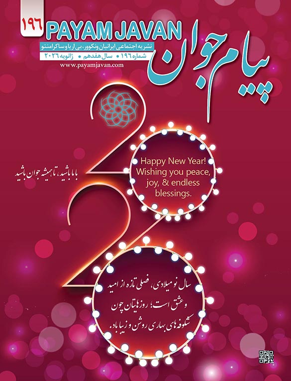 برای بیش از ۱۵ سال، "پیام جوان" پلی بین میراث و سنتهای غنی ایرانی و چشم انداز فرهنگی و پویای فارسی زبانان بی اریا و ساکرامنتو بوده است. هر شماره برای شما داستان ها، اخبار، و بینشهایی را در مورد زندگی فارسی زبانان آمریکایی و کانادایی ارائه میدهیم و از مشارکت شما در جامعه و در عین حال حفظ هویت فرهنگی خود تجلیل میکنیم.