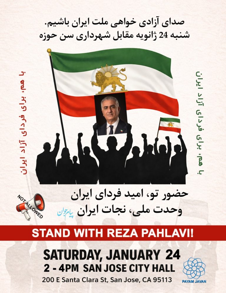 این تجمع در San Jose City Hall به نشانی 200 E Santa Clara St, San Jose, CA 95113 برگزار خواهد شد و از تمامی ایرانیان و حامیان آزادی ایران دعوت میشود تا با حضور خود، پیام همبستگی و حمایت از آرمانهای ملی را به گوش افکار عمومی برسانند. مشارکت گسترده مردم، عاملی مهم در تقویت صدای ایرانیان در عرصه بینالمللی خواهد بود.