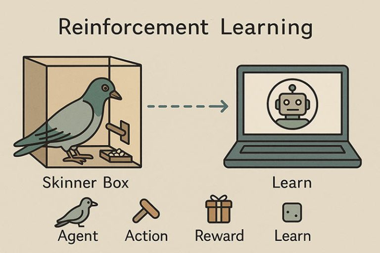 دهه‌ها بعد، همان اصول به شکلی نو در دنیای دیجیتال زنده شدند. «یادگیری تقویتی» در هوش مصنوعی، نسخه محاسباتی همان شرطی‌سازی اسکینر است: عامل‌های هوشمند با محیط تعامل می‌کنند، پاداش یا جریمه می‌گیرند و با تکرار، راهبردهای بهینه را می‌آموزند. پژوهش‌های عصب‌شناسی نیز نشان داده‌اند که ماده شیمیایی «دوپامین» در مغز، همان نقش «خطای پیش‌بینی پاداش» را ایفا می‌کند که در قلب الگوریتم‌های یادگیری تقویتی قرار دارد؛ پیوندی شگفت‌انگیز میان زیست‌شناسی و هوش مصنوعی.