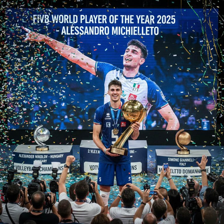 پیام جوان: فدراسیون جهانی والیبال (FIVB) امروز به طور رسمی الساندرو میکلتو، ستاره تیم ملی ایتالیا، را به عنوان بهترین بازیکن سال ۲۰۲۵ معرفی کرد. این انتخاب که با توجه به عملکرد استثنایی او در سطوح باشگاهی و ملی صورت گرفته است، تسلط بیچون و چرای وی را بر صحنه والیبال جهانی و تأثیرگذاری بینظیرش در رقابتهای سال جاری به اثبات میرساند. میکلتو با نمایشهای خیرهکننده خود، جایگاه خود را در اوج این ورزش تثبیت کرده است.