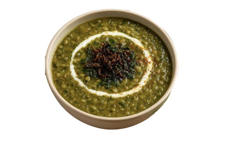 گشنیز در این آش نقش اصلی را بازی می کند؛ سبزی را وقتی برنج و ماش تقریباً نرم شدند اضافه کن. اگر زود بریزی، رنگش تیره می شود؛ اگر دیر بریزی، خام مزه می ماند.