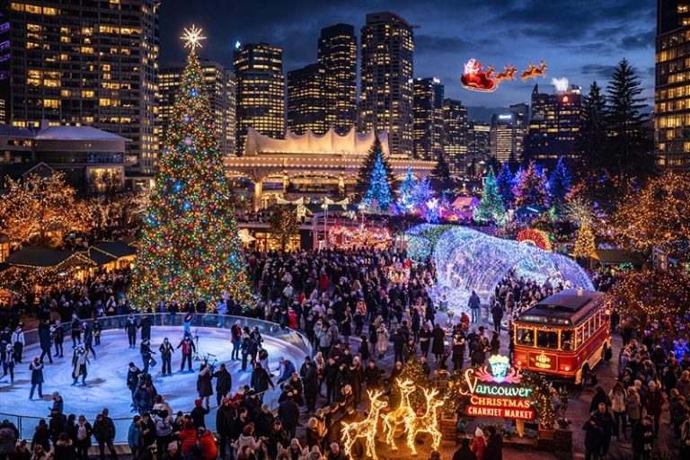 از جمله برجستهترین رویدادها میتوان به “پرواز با بابانوئل” (Flyover: Soar with Santa) اشاره کرد که تجربهای غوطهورکننده با مناظر هوایی شگفتانگیز کانادا را ارائه میدهد. همچنین، نصب هنری “سوندر: زندگی در نور” (Sonder: Life in Lights) خیابانهای تاریخی ییلتاون را به بوم زندهای از نور و داستان تبدیل کرده است. جشنواره نور “گلو لنگلی” (Glow Langley) با بیش از یک میلیون چراغ و “جشنواره نور وندوسن” (VanDusen Festival of Lights) که باغ گیاهشناسی را به سرزمینی جادویی بدل میکند، از دیگر جاذبههای بصری مهم این دوره هستند. بازارهای کریسمس ونکوور، شیپیاردز و وسبروک ویلج نیز با غرفههای صنایع دستی، غذاهای سنتی و اجرای زنده، فضایی دلنشین برای بازدیدکنندگان فراهم میآورند.