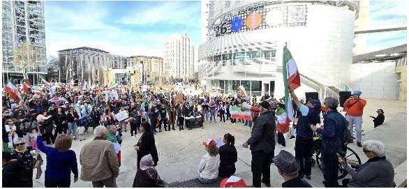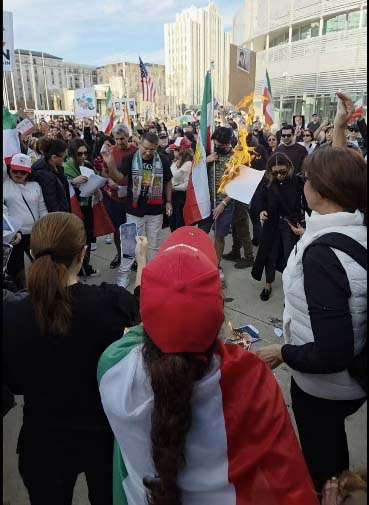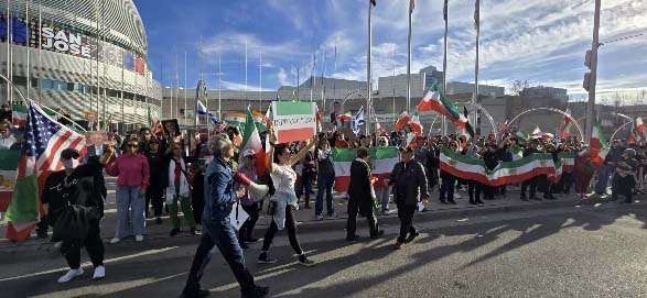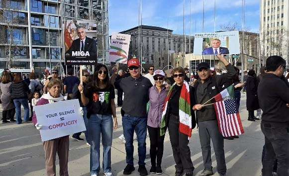 با طنینانداز شدن سرود جاودانهی «ای ایران»، اشک و غرور در چهرهها درهم آمیخت. جمعیت یکصدا، با در دست داشتن عکسهای شاهزاده رضا پهلوی و پلاکاردهایی با پیامهای روشن، شعارهایی به فارسی و انگلیسی علیه علی خامنهای و کلیت رژیم جمهوری اسلامی سر داد. شعارهایی چون «جاوید شاه» و «پهلوی انتخاب ماست» با قدرت در فضا پیچید و پیام روشنی از اراده مردم برای آیندهای آزاد، سکولار و مبتنی بر همزیستی مسالمتآمیز مخابره شد.