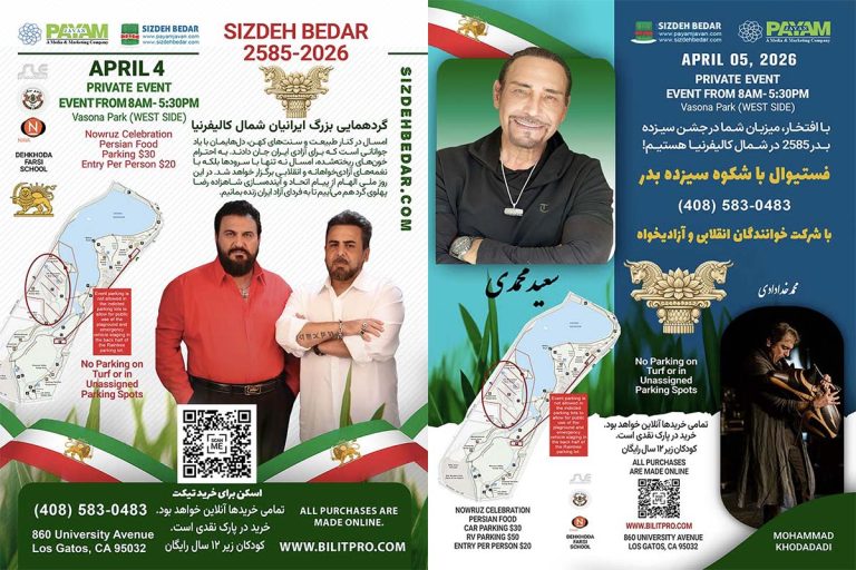 جشن بزرگ سیزده‌بدر ایرانیان شمال کالیفرنیا در سال ۲۰۲۶، در تاریخ‌های ۴ و ۵ آپریل در Vasona Park (بخش غربی) شهر لس‌گاتوس برگزار می‌شود. این رویداد فرهنگی با هدف گرامیداشت آیین کهن نوروز و حفظ میراث ارزشمند ایرانی، از ساعت ۸ صبح تا ۵:۳۰ عصر میزبان خانواده‌ها و علاقه‌مندان فرهنگ ایرانی خواهد بود.