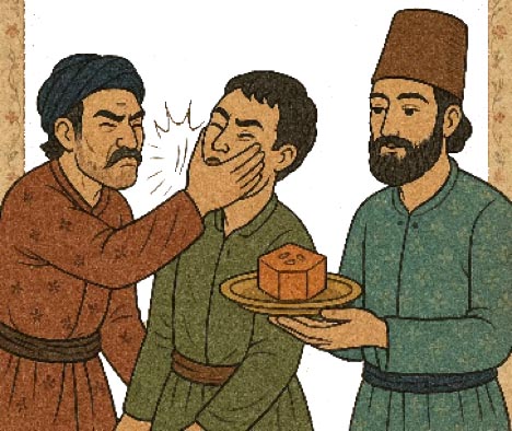در روزگاران قدیم، در یکی از شهرهای ایران، مردی ساده ‌ دل و خوش ‌ باور زندگی می ‌ کرد. او همیشه به وعده ‌ های دیگران اعتماد می ‌ کرد و باور داشت که همه مثل خودش صادق ‌ اند. روزی در بازار شلوغ شهر، با تاجری حیله ‌ گر روبه ‌ رو شد. تاجر برای فریب او گفت: «اگر امروز کمی صبر کنی، فردا برایت حلوایی شیرین و خوش ‌ طعم می ‌ آورم، چیزی که هیچ ‌ کس تا به حال نخورده.» مرد ساده ‌ دل که عاشق شیرینی بود، چشم ‌ هایش برق زد و با شوق پذیرفت. اما همان لحظه، تاجر برای آن ‌ که او را سرگرم کند، بی ‌ هوا سیلی ‌ ای به صورتش زد. مرد که از درد به خود آمد، با تعجب پرسید: «این چه کاری بود؟!» تاجر با خنده گفت: «این سیلی نقد است، همان چیزی که همین حالا نصیبت شد. اما آن حلوای نسیه، وعده ‌ ای است که شاید هیچ ‌ وقت به دستت نرسد.»