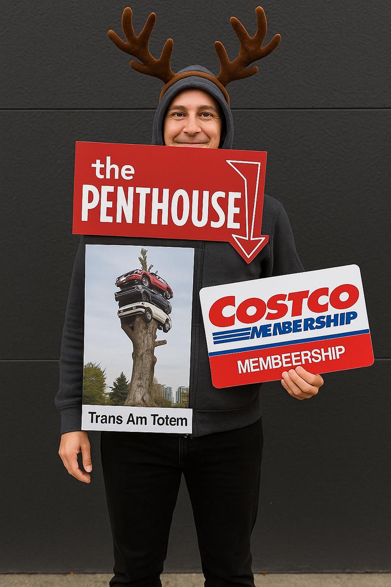 برخی از ایدههای امسال بر پایه مکانهای شناختهشده ونکوور شکل گرفتهاند؛ از جمله تابلوی معروف باشگاه پنتهاوس با شعار «همسایگان برای همیشه، نه همسایهها»، و مجسمه هنری «توتم Trans Am» که پس از سالها بحث درباره محل نصبش، دوباره خبرساز شد. حتی پیشنهاد شده است افراد با چسباندن ماشینهای کوچک روی شاخه یا تنپوش درختی، این اثر هنری را به لباس هالووین خود تبدیل کنند.