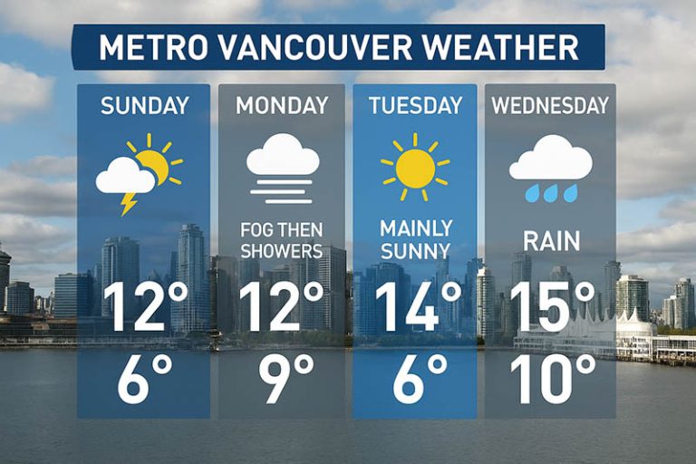 پیام جوان: به گزارش ونکوور ایز آوسوم، منطقه مترو ونکوور این هفته شرایط جوی متنوعی را تجربه خواهد کرد؛ از شبهای خنک و مهآلود گرفته تا روزهای بارانی و بادی. به گفته لویی کوهانی، هواشناس سازمان محیط زیست کانادا، روزهای ابتدایی هفته با تغییرات قابلتوجهی همراه است و ساکنان باید برای همه نوع شرایط آماده باشند.