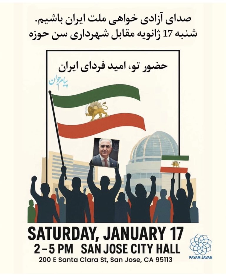 این رویداد از ساعت ۲ تا ۵ بعدازظهر مقابل شهرداری سنحوزه (San Jose City Hall) برگزار خواهد شد و از تمامی شهروندان، فعالان مدنی و ایرانیان مقیم منطقه دعوت میشود با حضور خود، صدای آزادیخواهی ملت ایران را رساتر کنند. برگزارکنندگان تأکید دارند که حضور هر فرد، نقشی مؤثر در زنده نگهداشتن امید به آیندهای آزاد برای ایران دارد.