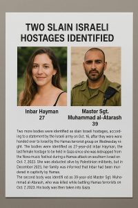 English IDF Confirms Recovery of Two More Hostage Victims from Gaza Payam Javan: The Israeli army announced on Wednesday that two more bodies of Israeli hostages have been identified after being Read More 2025-10-16