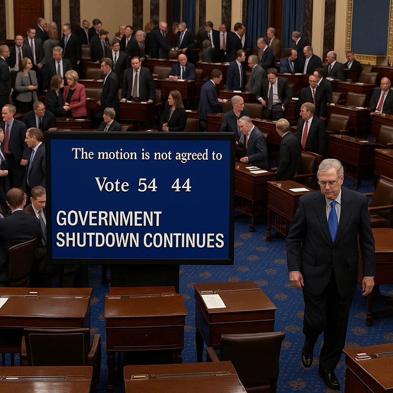 پیام جوان: چهارمین تلاش مجلس سنای آمریکا برای تصویب بودجه دولت در روز جمعه ۱۱ مهر به نتیجه نرسید و با کسب تنها ۵۴ رأی موافق در برابر ۴۴ رأی مخالف، از حد نصاب لازم ۶۰ رأی بازماند. به این ترتیب، تعطیلی دولت فدرال ایالات متحده وارد سومین روز خود شد و بن‌بست مالی میان جمهوری‌خواهان و دموکرات‌ها همچنان ادامه دارد.