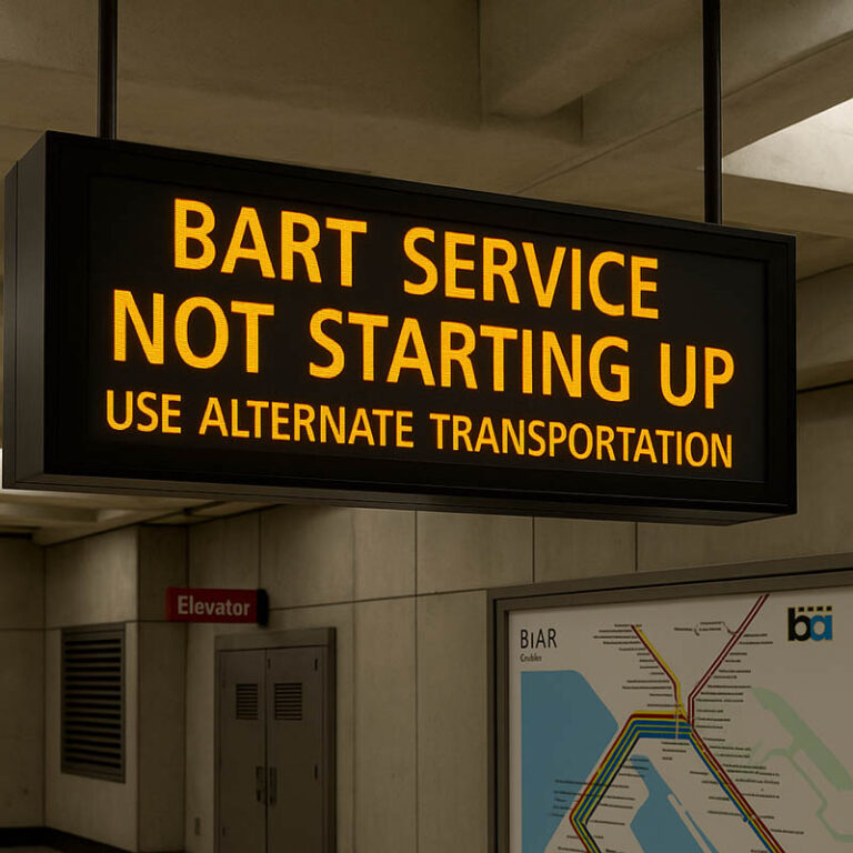 بنا بر اعلام رسمی آژانس BART، مشکل پس از یک بهروزرسانی شبکه رخ داده و باعث از کار افتادن سیستمهای کامپیوتری شده است. در اطلاعیهای که اندکی پس از ساعت ۵ صبح منتشر شد، این آژانس از شهروندان خواست تا برای جابهجایی، از وسایل حملونقل جایگزین استفاده کنند.