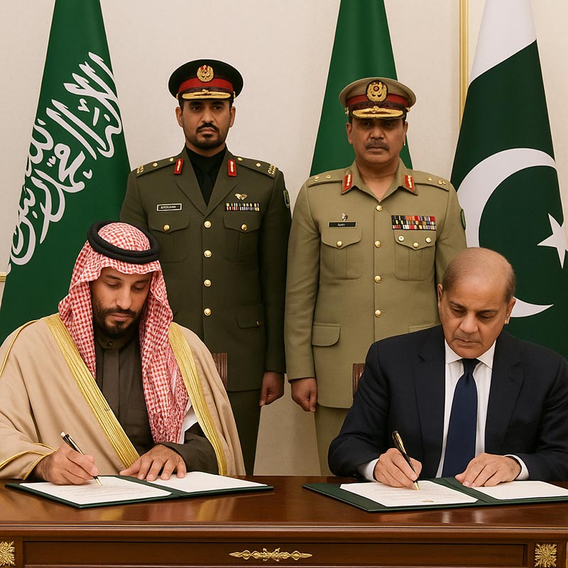 پیام جوان: وزارت دفاع عربستان سعودی اعلام کرد ولیعهد این کشور، محمد بن سلمان، و شهباز شریف، نخستوزیر پاکستان، روز چهارشنبه ۲۶ شهریور یک پیمان دفاعی استراتژیک مشترک امضا کردند. طبق مفاد این توافق، هرگونه حمله به یکی از دو کشور به منزله «حمله به هر دو» قلمداد خواهد شد. وزارت دفاع عربستان هدف این پیمان را تقویت «بازدارندگی و همکاری مشترک» در شرایط پرتنش منطقه دانسته است.