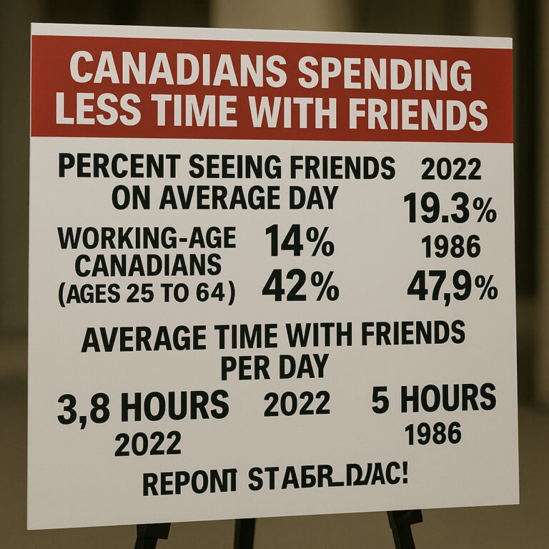 پیام جوان: به گزارش ونکوور ایز آوسوم، گزارش جدید آمار کانادا، نشان می‌دهد که کانادایی‌ها کمتر از همیشه با دوستان خود وقت می‌گذرانند. در سال ۲۰۲۲، تنها ۱۹.۳ درصد از کانادایی‌ها به‌طور متوسط روزانه با دوستان خود به‌صورت حضوری ملاقات کردند، در حالی که این رقم در سال ۱۹۸۶، ۴۷.۹ درصد بود. این کاهش به‌ویژه در گروه سنی ۲۵ تا ۶۴ سال چشمگیر بوده، جایی که احتمال دیدار با دوستان از ۴۲ درصد به ۱۴ درصد در این بازه ۳۶ساله سقوط کرده است. همچنین، میانگین زمان صرف‌شده با دوستان برای کسانی که ملاقات کردند، از ۵ ساعت در روز در ۱۹۸۶ به ۳.۸ ساعت در ۲۰۲۲ کاهش یافته است. این گزارش همزمان با افزایش نگرانی‌ها درباره کمبود وقت برای معاشرت منتشر شده، به‌طوری که ۴۶ درصد از پاسخ‌دهندگان در ۲۰۲۲ احساس کردند زمان کافی با عزیزان خود ندارند، در مقایسه با ۳۴ درصد در ۱۹۹۲.