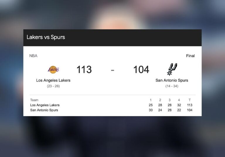پیام جوان: به گزارش ورزش سه، تیم لس‌آنجلس لیکرز در ادامه دیدارهای خود در لیگ اتحادیه ملی بسکتبال آمریکا، NBA، صبح امروز، پنج‌شنبه 113 بر 104 سان آنتونیو اسپرز را شکست داد.