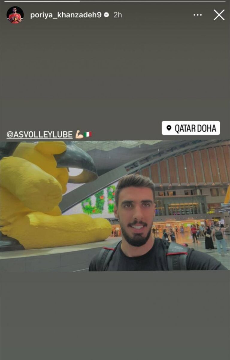 او که برای این فصل به عضویت تیم سرشناس لوبه ایتالیا درآمده است، دیشب برای پیوستن به این تیم راهی ایتالیا شد تا دوران جدیدی در والیبال خود آغاز کند. پوریا حسینخانزاده با گذاشتن عکسی از خود در اینستاگرام که نشان میدهد در فرودگاه دوحه قطر است، این موضوع را تأیید کرده است.
