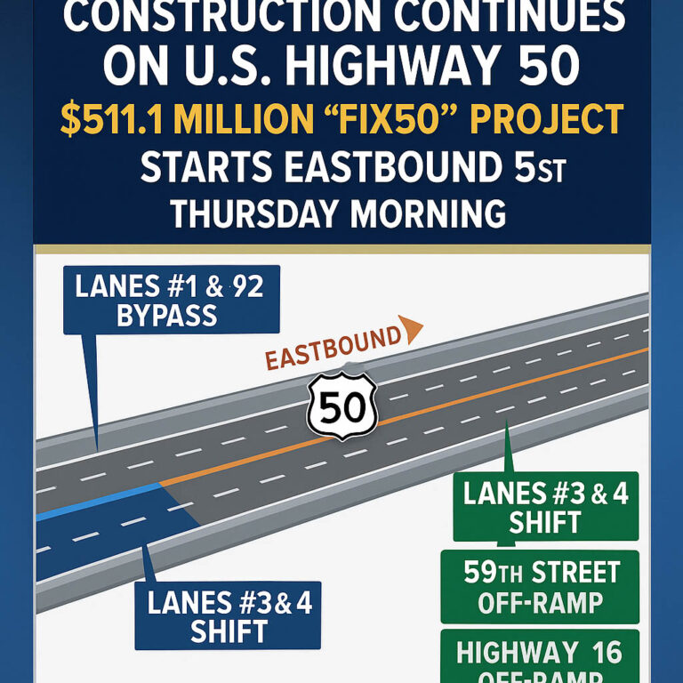 پیام جوان: به گزارش فاکس 40، عملیات ساخت و ساز در بزرگراه ۵۰ ایالات متحده موسوم به پروژه «Fix50» با بودجهای بالغ بر ۵۱۱.۱ میلیون دلار، از صبح پنجشنبه بار دیگر از سر گرفته میشود. این مرحله از پروژه در محدوده شرق خیابان ۵۱ آغاز شده و تا پس از خروجیهای Howe Avenue و Power Inn Road ادامه خواهد داشت.