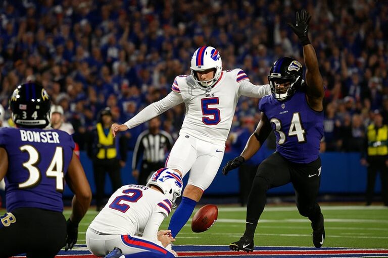 پیام جوان: تیم بوفالو بیلز در شبی فراموشنشدنی موفق شد با یک بازگشت فوقالعاده، بالتیمور ریونز را با نتیجه ۴۱ بر ۴۰ شکست دهد. این دیدار که یکشنبه شب در اورچارد پارک نیویورک و در چارچوب مسابقات کنفرانس فوتبال آمریکا (AFC) برگزار شد، با فیلد گل ۳۲ یاردی مت پراتر در لحظات پایانی به سود میزبان پایان یافت.