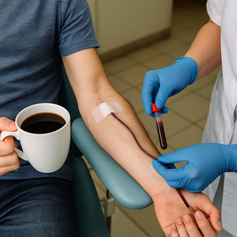 آنطور که پژوهشگران توضیح دادهاند، برخی کشورهای اروپایی به اهداکنندگان توصیه میکنند پیش از اهدا مصرف کافئین را محدود کنند، اما چنین هشدارهایی در آمریکا وجود ندارد. کافئین با افزایش فشار خون و گشاد کردن رگها ممکن است عمل خونگیری را آسانتر کند، اما اثر ادرارآوری آن میتواند به کمآبی بدن اهداکننده منجر شود.
