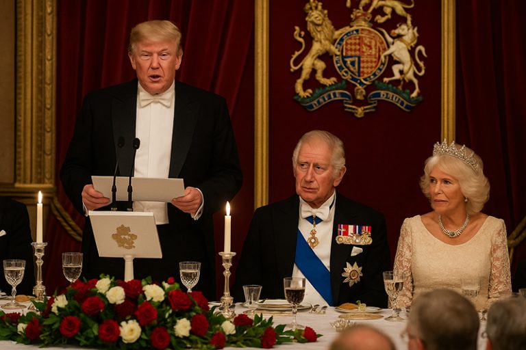 پیام جوان: دونالد ترامپ، رئیسجمهوری آمریکا، شب گذشته مهمان ضیافت شام پادشاه بریتانیا در کاخ ویندزور بود. او در سخنرانی خود از پادشاه چارلز سوم، ملکه کامیلا و خانواده سلطنتی برای مهماننوازی صمیمانهشان قدردانی کرد و حضور در این مراسم را «یکی از بزرگترین افتخارات زندگیاش» توصیف کرد. ترامپ همچنین تأکید کرد که نخستین رئیسجمهوری ایالات متحده است که دو بار در چنین مراسمی مورد استقبال رسمی پادشاه بریتانیا قرار گرفته است.