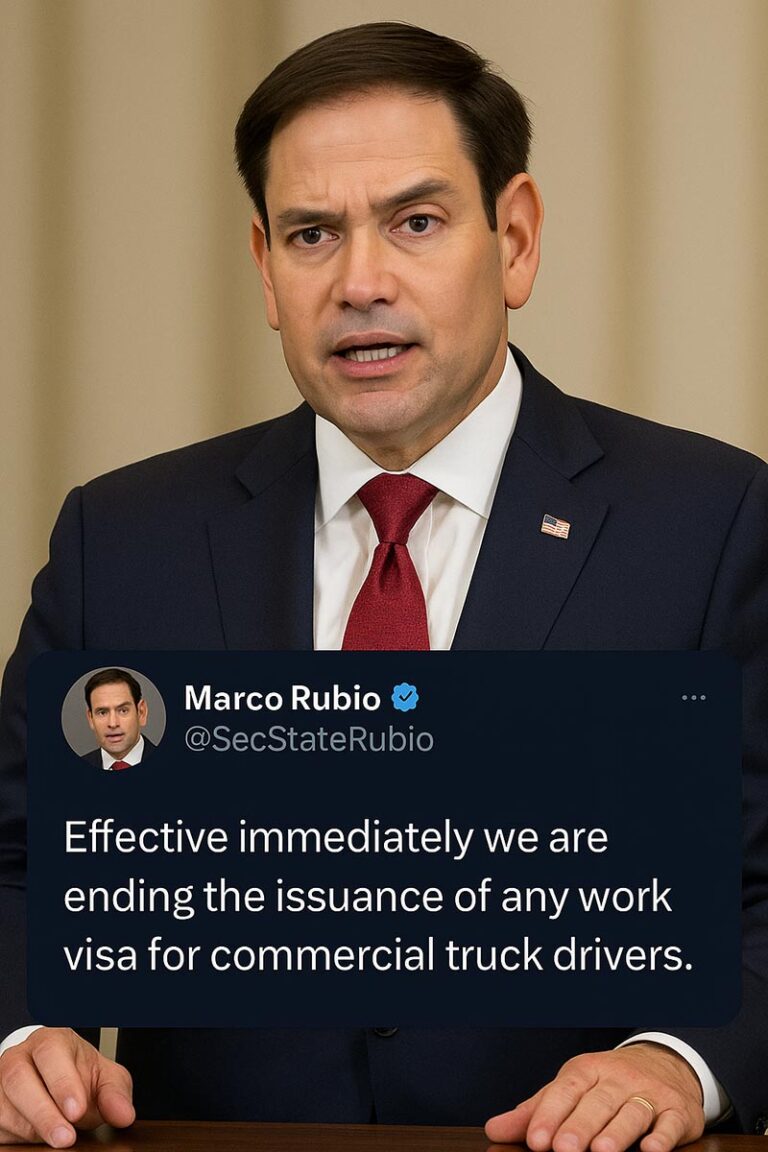 روبیو دلیل این تصمیم را افزایش حضور رانندگان خارجی در جادههای آمریکا عنوان کرد و گفت این روند جان شهروندان را به خطر انداخته و معیشت رانندگان کامیون آمریکایی را تهدید میکند. وزارت امور خارجه نیز در واکنش اعلام کرد این تصمیم شامل همه ملیتها میشود و متوجه کشور خاصی نیست.