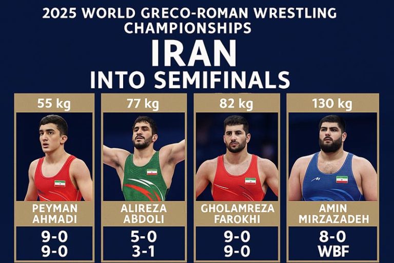 پیام جوان: رقابتهای کشتی فرنگی قهرمانی جهان ۲۰۲۵ در زاگرب کرواسی برای تیم ملی ایران آغاز درخشانی داشت. هر چهار فرنگیکار کشورمان در اوزان ۵۵، ۷۷، ۸۲ و ۱۳۰ کیلوگرم با مجموع ۱۰ پیروزی مقتدرانه راهی مرحله نیمهنهایی شدند و امیدها را برای کسب مدالهای رنگارنگ زنده کردند.