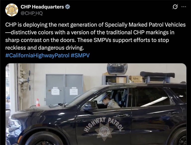 پیام جوان: به گزارش ان بی سی بی اریا، پلیس بزرگراه کالیفرنیا (CHP) روز پنج‌شنبه از ناوگان جدید خودروهای گشتی با طراحی ویژه برای مبارزه با رانندگی بی‌پروا و خطرناک رونمایی کرد. این خودروها که با رنگ‌آمیزی متفاوت از خودروهای سنتی سیاه و سفید CHP طراحی شده‌اند، از رنگ اصلی کارخانه‌ای خود استفاده می‌کنند تا مأموران بتوانند در ترافیک مخفی بمانند و رانندگان متخلف را در حین ارتکاب تخلف شناسایی کنند.