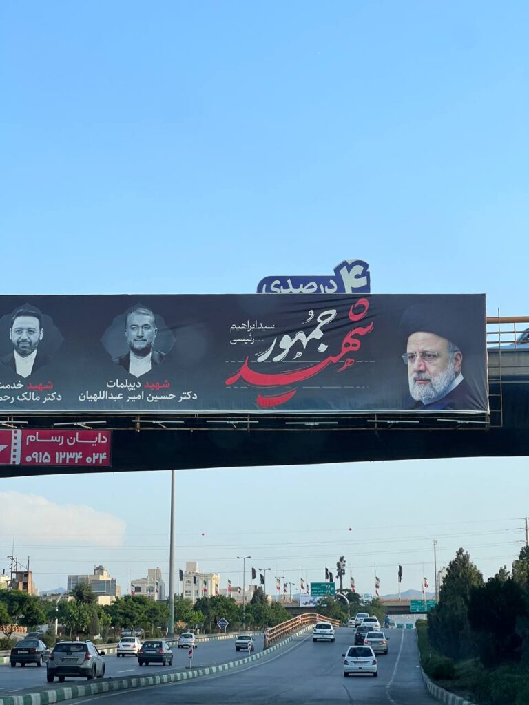 و در اقدامی دیگر باز هم در مشهد، قرارگیری دو بنر روی یکدیگر این جمله را خلق کرد: «مسافر بزرگترین ترن هوایی کشور باشید، رئیسی شهادتت مبارک.»