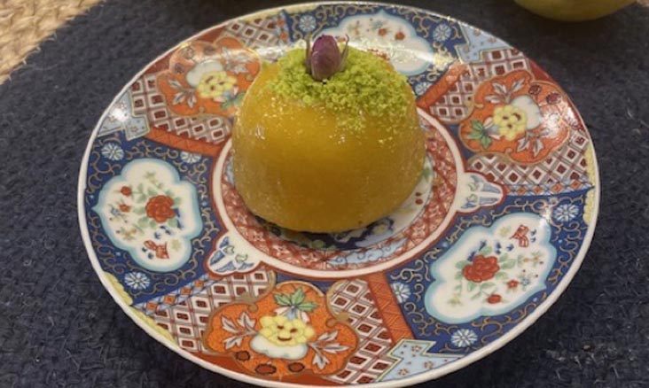 ارد حلوا “سبوس دار یا سفید” با کره برای ده دقیقه تفت دهید. ادویه ها را اضافه کرده و با شیره ای لیمو را قبلا جوشاندید به هم بزنید. وقتی حلوا فرم گرفت میتوانید با قاشق بستنی داخل ظرف بگذارید. و سپس با لیموی که در شکر پخته شده کاور کنید . با پودر پسته وغنچه گل محمدی تزیین کنید.