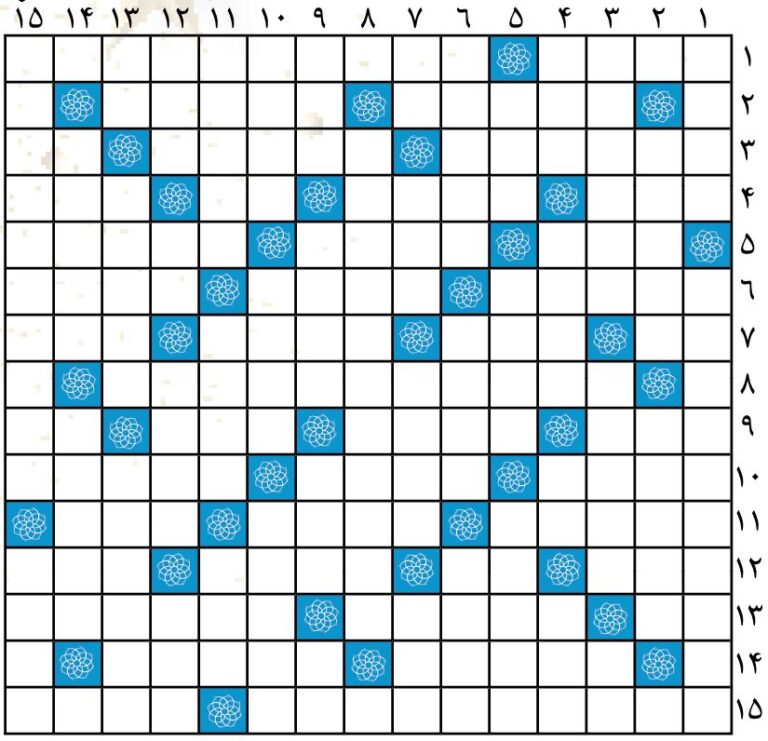 افقی: 1- شهری در افغانستان که زمانی پایتخت سلسله غزنویان بود- سیاستمدار ایرانی در دوران قاجار که دو دوره نخستوزیر و مدتها نیز سفیر ایران در لندن بود 2- مربی شاهزادگان و عنوانی در دستگاه حکومتی سلجوقیان- الهی و خدایی 3- از مدلهای اتومبیل ساخت شرکت رنو- گونهای هواگرد با قابلیت دیدهوری راداری- جای پُردرخت 4- ظاهرسازی- بهره و نصیب- بیماری و رنجوری- محموله 5- اندازه گرفتن- گول و احمق- کاخی در شهر تورین ایتالیا که از جاذبههای مهم گردشگری است و بهعنوان موزه هنرهای معاصر شناخته میشود 6- پریشانخاطر- خوشریخت و خوشاندام- تنها و مجرد 7- صنم- اولین و قدیمیترین میدان در شهر تهران- بسیار دروغگو و فریبدهنده- تعداد دفعات مشاهدهی ویدئوی اشتراکی شما توسط فالوورها در اینستاگرام 8- کتابی از سیدنی شلدون 9- از کلمات شرط- پسندیده و خوب- فیلسوف معروف آلمانی که تاریخگرایی و ایدئالیسم او انقلاب عظیمی در فلسفه اروپا به وجود آورد- عدد و شماره 10- شجاع و دلیر- سیاه و سفید- منزلها 11- مجموعهای از رمانهای فانتزی تاریخی به قلم وایانا گابالدون نویسندهی معروف آمریکایی- درختچهای از تیرهی گلسرخیان که به حالت وحشی در نقاط ساحلی و مرطوبی فراوان است- نان بزرگ روغنی 12- تر و تازه و شاداب- آسیب و آفت- فرماندهان- عضو تنفسی 13- کوبیده و نرمشده- از نبرهای نادرشاه افشار که منجر به فتح هندوستان شد- خوراکی که از اسفناج و کدو و بادنجان با ماست و کشک درست کنند 14- درخت بسیار میوهدهنده- بازرگان و صنعتگر بریتانیایی و یکی از بنیانگذاران اصلی صنعت نفت و صنایع پتروشیمی در ایران 15- فیلمساز و تهیهکنندهی آمریکایی و کارگردان فیلم گروهبان یورک- از شهرهای استان بوشهر که قلعه کلات در آن از نقاط دیدنی جنوب ایران است.