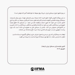 ایران و جهان ایفما: در ویرانشهر سینمای ایران، تبریک روز سینما موهن است پیام جوان: کانون فیلمسازان مستقل ایران (ایفما) در بیانیهای تند، روز ملی سینما را در شرایط کنونی کشور، موهن خوانده Read More 2024-09-12