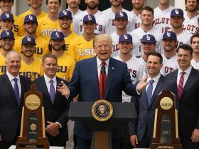 ترامپ در کاخ سفید از قهرمانان بیسبال دانشگاهی LSU تجلیل کرد