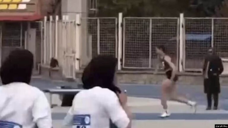 این تصاویر که در فضای مجازی منتشر شد، نشان میداد که این ورزشکار قزاقستانی با شورت و لباس استاندارد مسابقات دوومیدانی، در کنار زنان ورزشکار ایرانی با پوشش اجباری مرسوم در جمهوری اسلامی، در حال مسابقه بود.